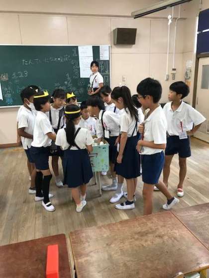 2年生以上の各クラスごとに「ボーリング」「わなげ」「宝探し」「空気砲」「射的」等のお店を出しました。中には「人間まちがいさがし」というユニークなお店もありました。
