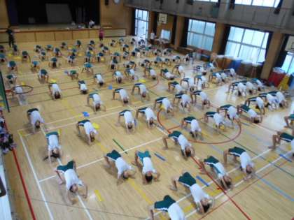 6年生の団体演技。一人技の練習中です。