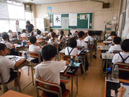 「木」の練習をしていました。最後の「はらい」の一画がポイントですね。今日は練習だけでしたが、次の書写では清書をする予定です。