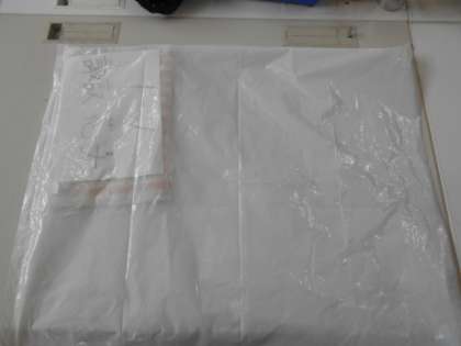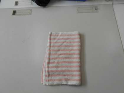 ゴミ袋の端っこにバスタオルと名前を書いた紙を入れて、たたんでいきます。