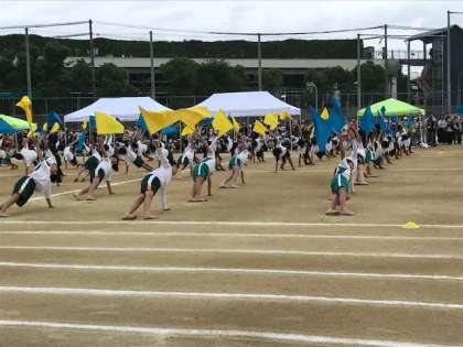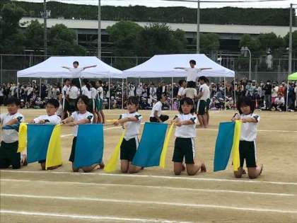 フラッグや組体操の真剣なまなざしと、みんなで協力している様子がすばらしく、さすが最高学年でした。