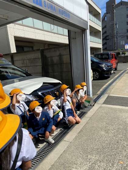校区内にある交番にインタビューに行きました。いつも遊んでいる公園の横なので、おなじみの児童もいたのではないでしょうか。