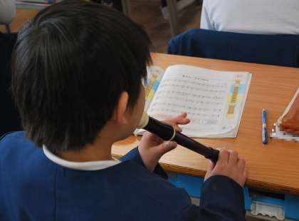 3年生では、音楽の学習で「冬さん、さようなら」という曲をリコーダーで演奏する練習をしていました。