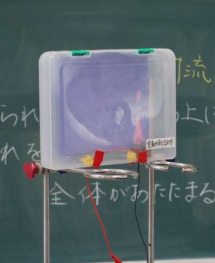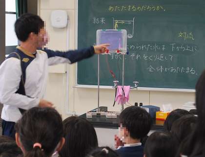 4年生の理科の学習では、「空気はどのようにあたたまっていくのか」を実験で確かめていました。