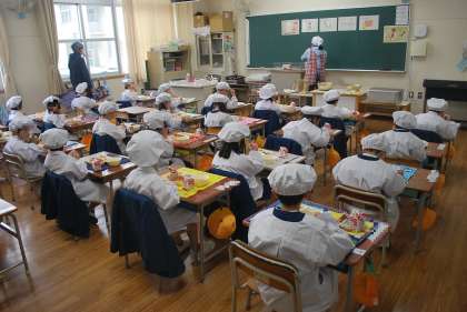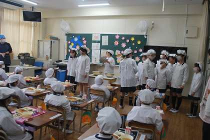 1年生は初めての給食です。準備は6年生がしてくれました。