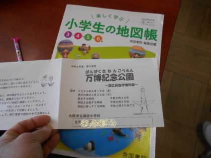 1年生は大阪城公園、2年生はキッズプラザ、3年生は深北緑地、4年生は山田池公園、5年生は万博記念公園です。