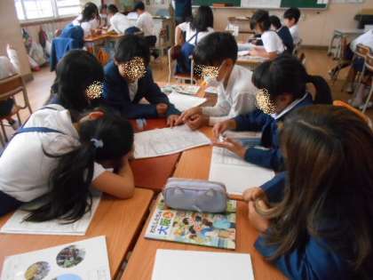 先週の校区探検で見つけたものを発表しています。