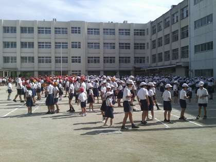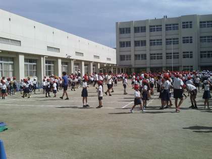 今日の児童集会は、キッズファミリーに分かれて、「ケンケンパ、じゃんけん」をしました。
