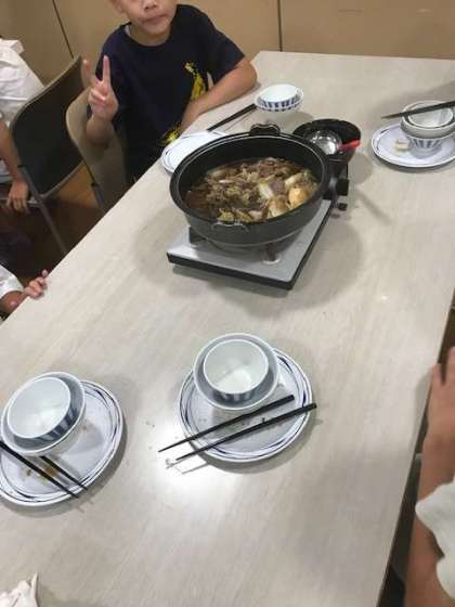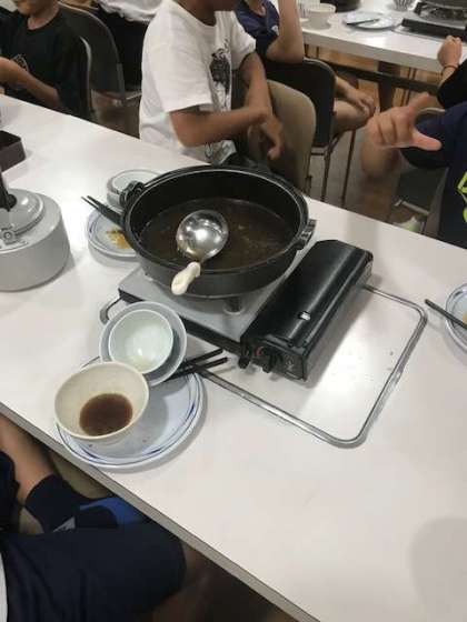 ほとんどの班のお鍋が空になっているのですが、結構肉も残っている班もあります。食べないの??