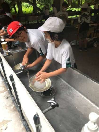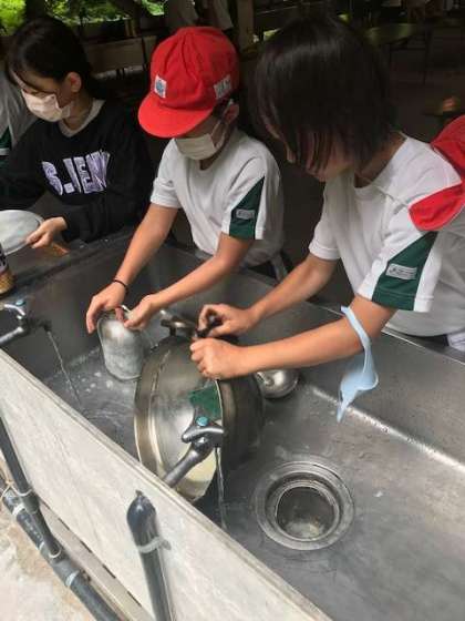 食べ終わったら、食器や鍋を洗います。