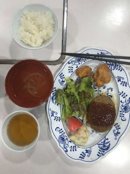 夕食のメニューは、ハンバーグと唐揚げです。