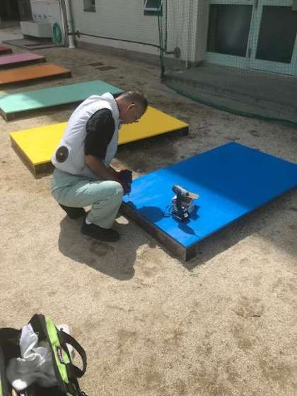 管理作業員さんが、夏休みの間にジャンピングボードをすべて作り直してくれました。
