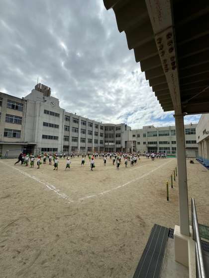 初めて、ポンポンを持って踊りました。特に隊形移動を中心に練習に励んでいます。
