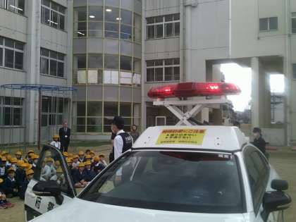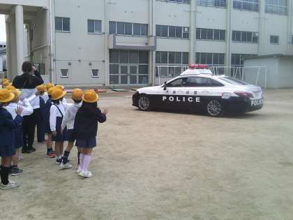 日頃の活動の様子を聞いただけでなく、パトカーの中をのぞいたり、サイレンの音を聞いたりすることができました。