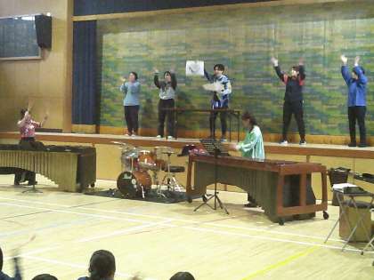 途中、先生たちも参加してのボディーパーカッションがあり、最後は「情熱大陸」のメインテーマで終わりました。土曜授業で「情熱大陸」を合奏した5年生からは、今日1番の歓声が上がっていましたね。