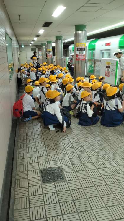 遠足に出発しています。 深江橋駅で臨時列車を待っています。