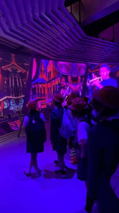 アメリカ館を見学しています。 クラスごとに分かれて入場しています。
