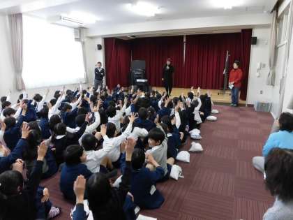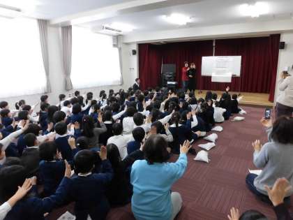 学校に関する言葉を手話でどう伝えるかを学んだり、歌に合わせて手話を行ったりしました。