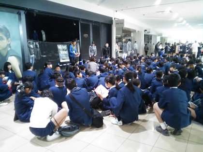予定通りキッザニアに到着。 入場前の説明を聞いています。