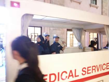 救急車で緊急出動。