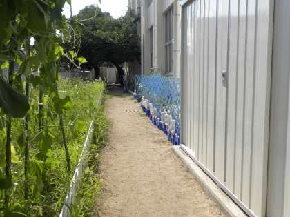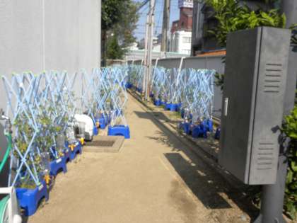 〇1組と2組、4組の12人分の植木鉢は東校舎の南側、3組と4組の16人分の植木鉢は講堂の南側にあります。