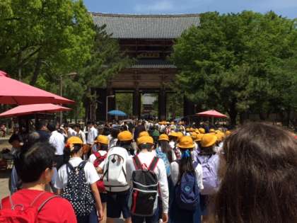 6年生の遠足は奈良公園です。さすがは国際都市ですね。外国からのお客さんもたくさんおられます。