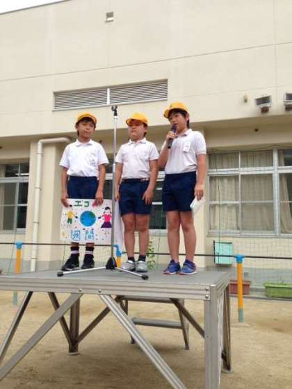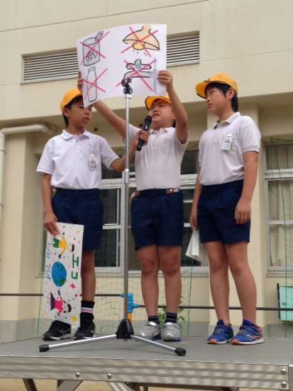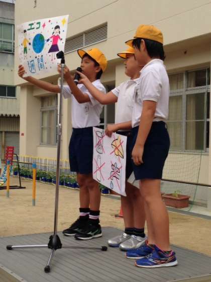 児童朝会の時に、自然委員会の児童がエコ週間について発表をしました。