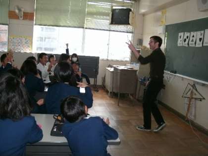 ❤hearts,● circles,♦ diamonds,▲ triangles,★ stars 5つの形を英語で言えるように学びました。最後は、ニコラス先生と一緒にゲームタイム! 英語を耳で聞き、声と身体で表現する元気いっぱいの外国語活動です。