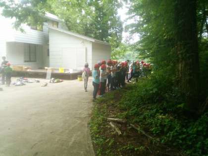 みんなでスイカを食べています。 山の上とはいえ暑いので、 スイカは美味しいです!!