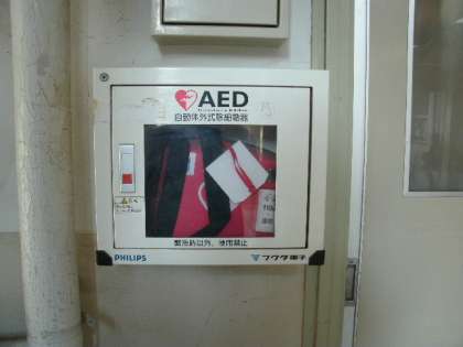 職員室の前には万が一の時に備えてAEDが設置されています。