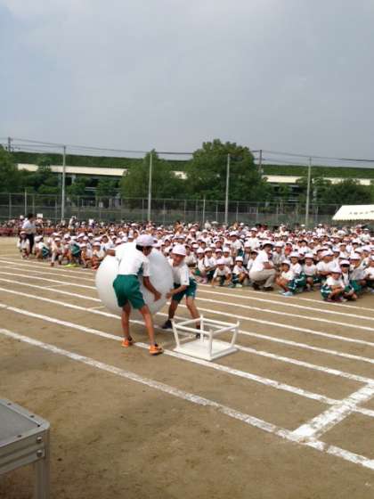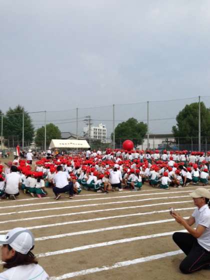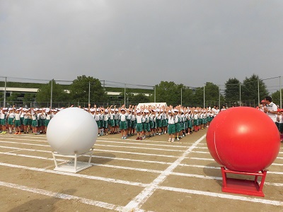 1〜3年は、玉を転がして送ります。4〜6年は、玉を頭の上に持ち上げて送ります。