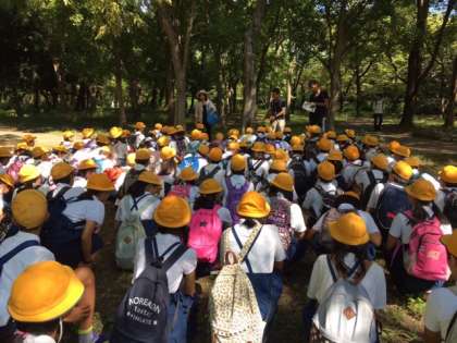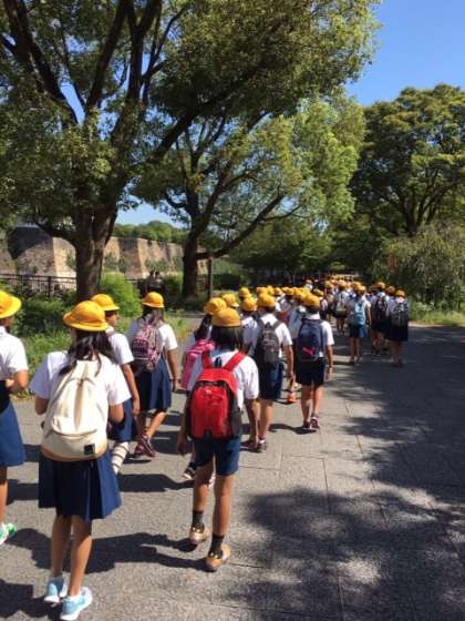 大阪歴史博物館の見学を終えて、移動中です。楽しみにしていたお弁当の時間です。