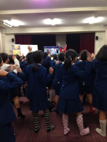 今回の出前授業は、「おなか元気教室」としてヤクルトの方に教えていただきました。バランスのよい食事や正しい生活習慣が、おなかの健康に大切だそうです。「おなか元気ダンス」も教えていただきました。