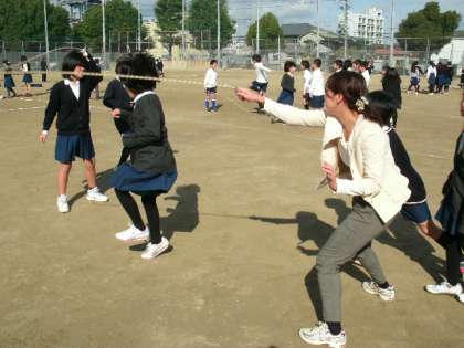 子どもたちの中心になって、綱をまわし、声をかけ、歓声まであげる先生たちを発見!