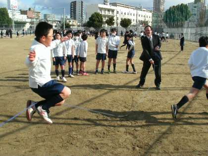 グランドは冷たい空気に包まれて、非常に寒かったですが諏訪っ子たちは元気いっぱい大縄とびにチャレンジしていました。