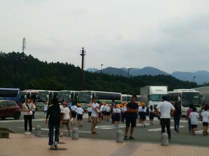 道の駅まほろばで2回目のトイレ休憩しました。ここも林間のバスや子どもたちでいっぱいです。