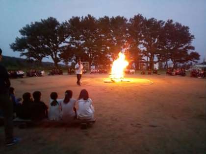 今日、こちらの天気予報は夕方から本格的な雨の予想で、キャンプファイアはあきらめかけていたのですが、奇跡的に晴れて来て、予定通りにキャンプファイアができました!!