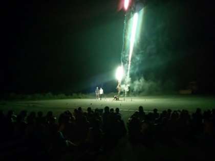 先生方が仕掛けや打ち上げ花火を次々と見せてくれました。子どもたちは「たまや!」と言いながら大喜びでした!!