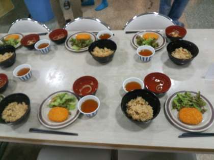 林間学習最後の食事は炊き込み御飯です。