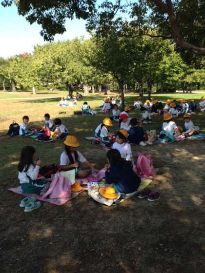 お弁当は西の丸庭園で食べました。ここも空いていて、おやつの後、もう一度遊ぶことができました。
