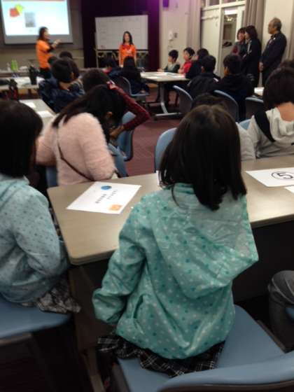 第二音楽室では、キッズマネースクール認定講師 草野 麻里さんによるお金のお話がありました。「7人の小人と世界のお金」と題して、お芝居やゲームを通じてわかりやすく教えていただきました。