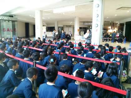 1時間もかからずに、キッザニアに到着しました。 まずは、施設の方から説明を聞きます。