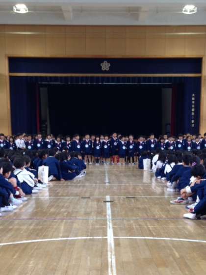 1年生の入学を心から祝うとともに、みんなで仲よく学校生活を送ることができるように「入学を祝う会」が行われました。
