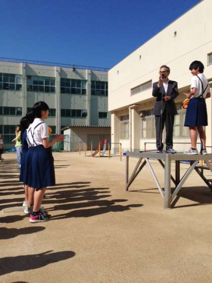 今日の児童朝会では、まず、女子ミニバスケットボールチームの表彰がありました。
