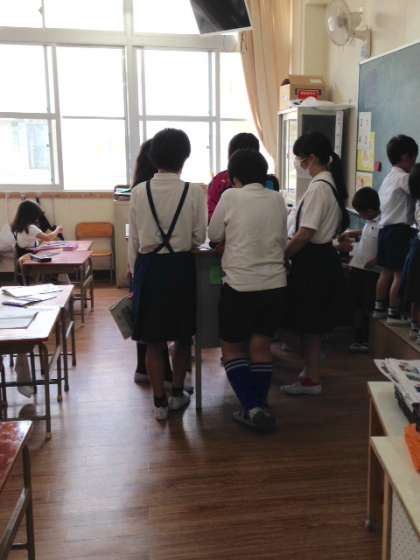 今日は、まず担当の先生と6年生との打ち合わせが20分休憩にありました。明日は、初めてキッズファミリー(たてわり班のグループ)に参加する1年生と6年生が顔合わせをし、交流を深めます。