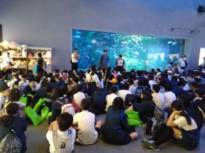 鳥羽水族館を出る前に、また大水槽前に集合です。 皆、時間前に集合できました。
