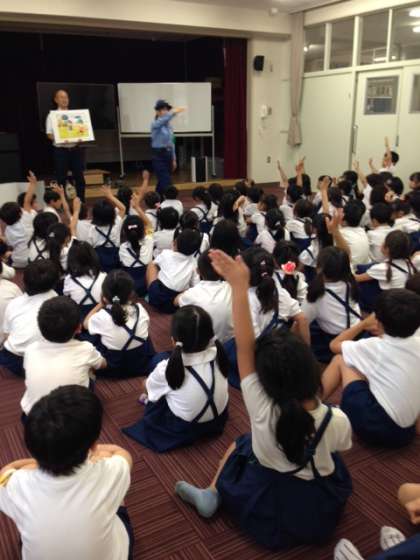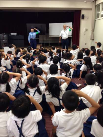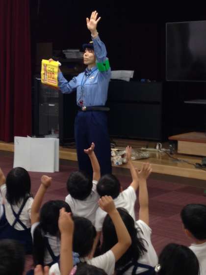 城東警察署員の方に、1年生が自分の身を守るために必要な「5つの約束」のお話をしていただきました。