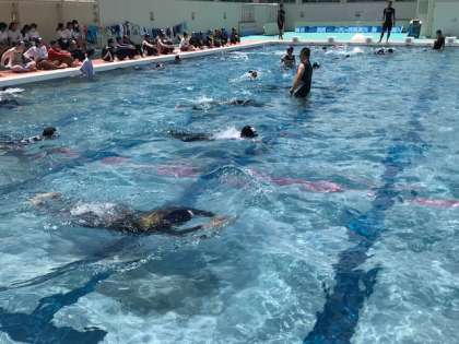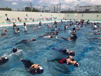 6年生は、着衣泳の学習を行いました。服を着たまま泳いだり、ペットボトルを浮き輪がわりにしたり、子どもたちは、苦戦しながら取り組んでいました。