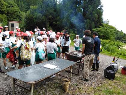 頑張って掴んだ虹鱒はすぐに炭火で焼いてもらいます。