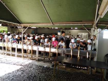 おいしいカレーを食べた後は、しっかり洗います。 すすで汚れた鍋もきれいにします。